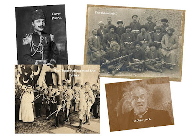 As the last of the Kaiserlicher Stab fall to the blood-spattered plain they manage a Parthian shot. Genevieve, after travelling overland from Peshawar, through Kashgar and into Jhamjarhistan catches fire. Honeysuckle and her crew are forced to bale out to avoid the flames. A regretful end to one of Henry Royce and Charles Rolls finest creations. Snappers, nursing his shredded buttocks, watches from afar and cannot stop a tear or two rolling down his dusty cheeks (on his face, that is!).